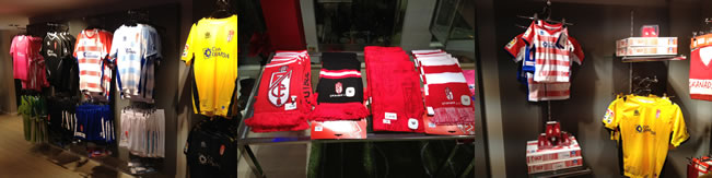 Como complemento a la Agencia de Viajes también disponemos de una tienda de Producto Oficial del Granada C.F. Ya era hora de disponer de una tienda del GCF en el centro de la ciudad. En la planta de arriba de nuestras instalaciones podrás encontrar todos los productos oficiales de la temporada: camisetas, pantalones, medias, bufandas, productos para niños y bebes y un sin fin de artículos con el sello oficial del Granada C.F.